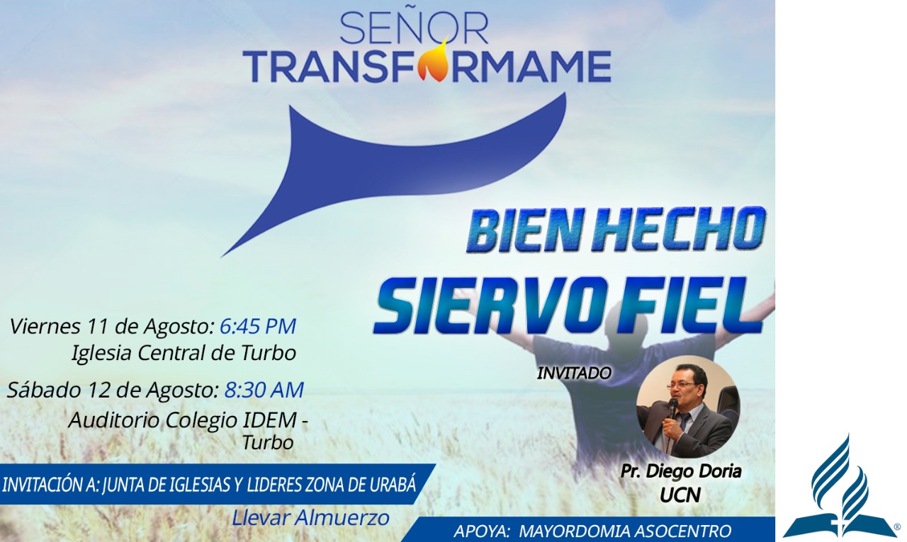 Gran congreso de mayordomía en Turbo, inicia el viernes 11 de agosto en la iglesia Central de Turbo y el sábado 12 de agosto se desarrollará en el auditorio del colegio IDEM. Allí estarán reunidas las juntas de iglesia y lideres de la zona de Urabá.
